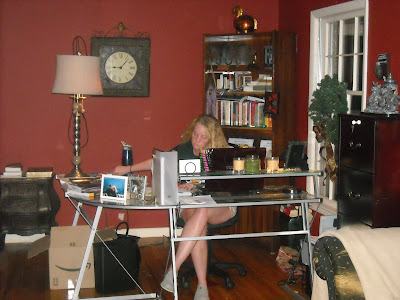 The next few photos show some of the ways Julie has found to study, and take her test's online, at HOME!